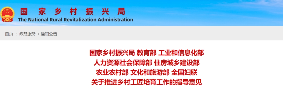 近日,国家乡村振兴局、教育部、文旅部等8部门在发布的《关于推进乡村工匠培育工作的指导意见》(以下简称《指导意见》)中如此表示。