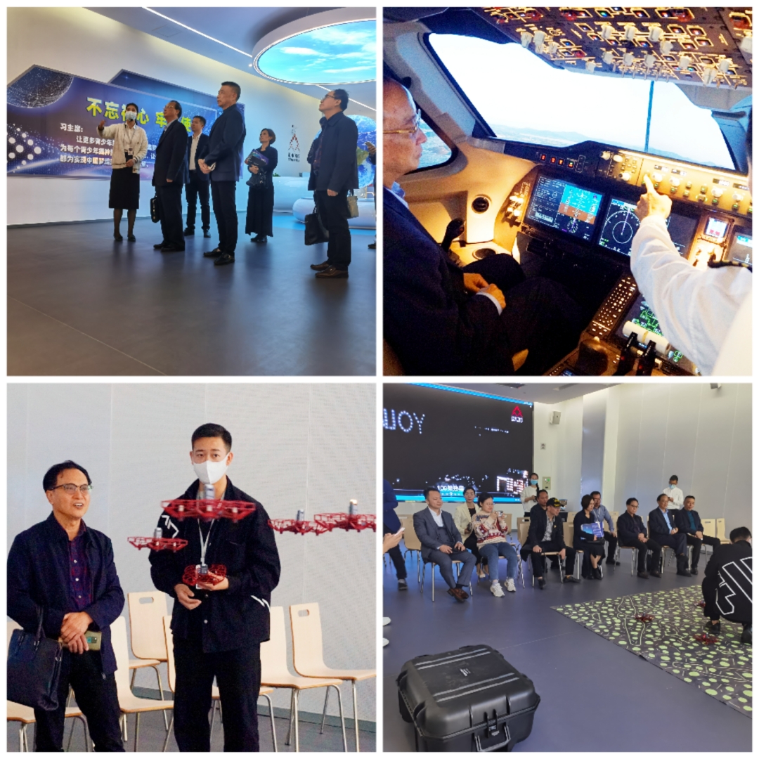 考察调研中,姜正国等一行详细了解了湖南正中航空航天体验馆,感受红色航空史、学习航空知识、操作飞机模拟驾驶舱、观看无人机表演、制作飞机模型,五大板块研学课程等情况。并对体验馆文化研究、精品课程开发、研学师资培训等方面提出了宝贵建议。以“小小飞行员”青少年航空主题研学活动,让青少年学习航空知识,感悟科技魅力,激发爱国情怀的体验活动从这里开始。打造一个融教育科普、娱乐互动、沉浸体验为一体的航空航天科普教育基地。